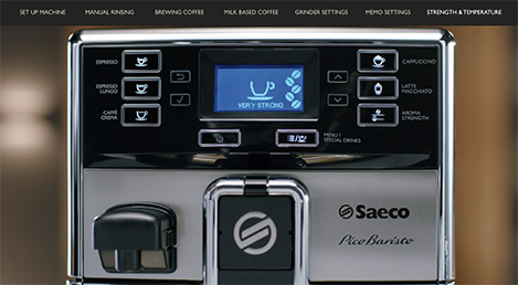 Kohvi kanguse muutmiseks vajutage nuppu „Aroma strength“ (Aroomi kangus). Iga kord kui nuppu „Aroma strength“ (Aroomi kangus) vajutate, muutub aroomi kangus ühe taseme võrra. Ekraanil esitatakse valitud kangus, mis salvestatakse ainult siis, kui muudate kangust kohvi valmistamise ajal.