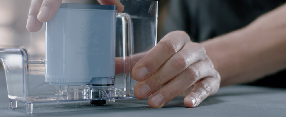 Asetage filter veepaagi peale ja alustage seadistamist. Pärast õigesti seadistamist esitatakse ekraanil „AquaClean 100%“ ikoon.